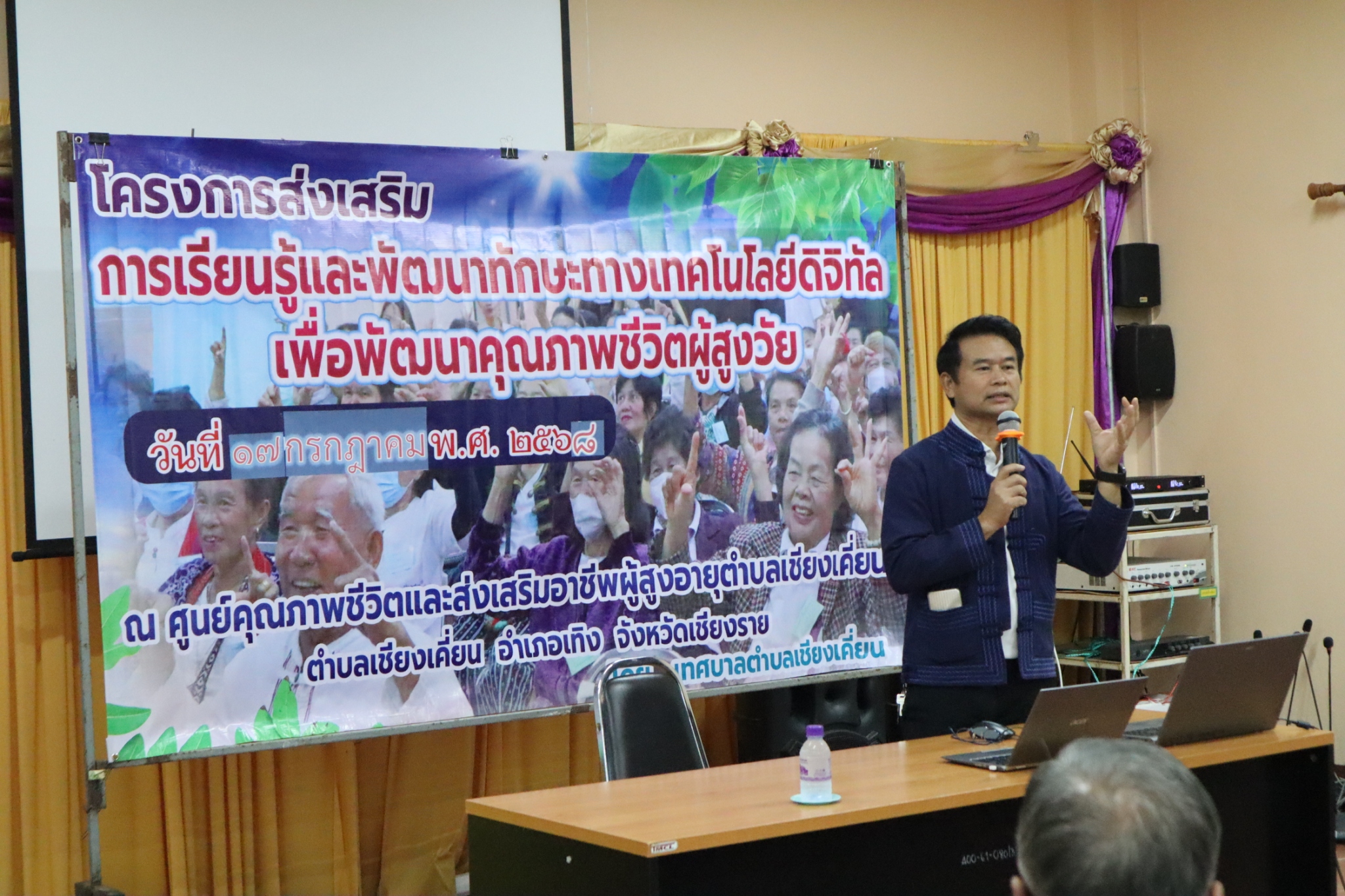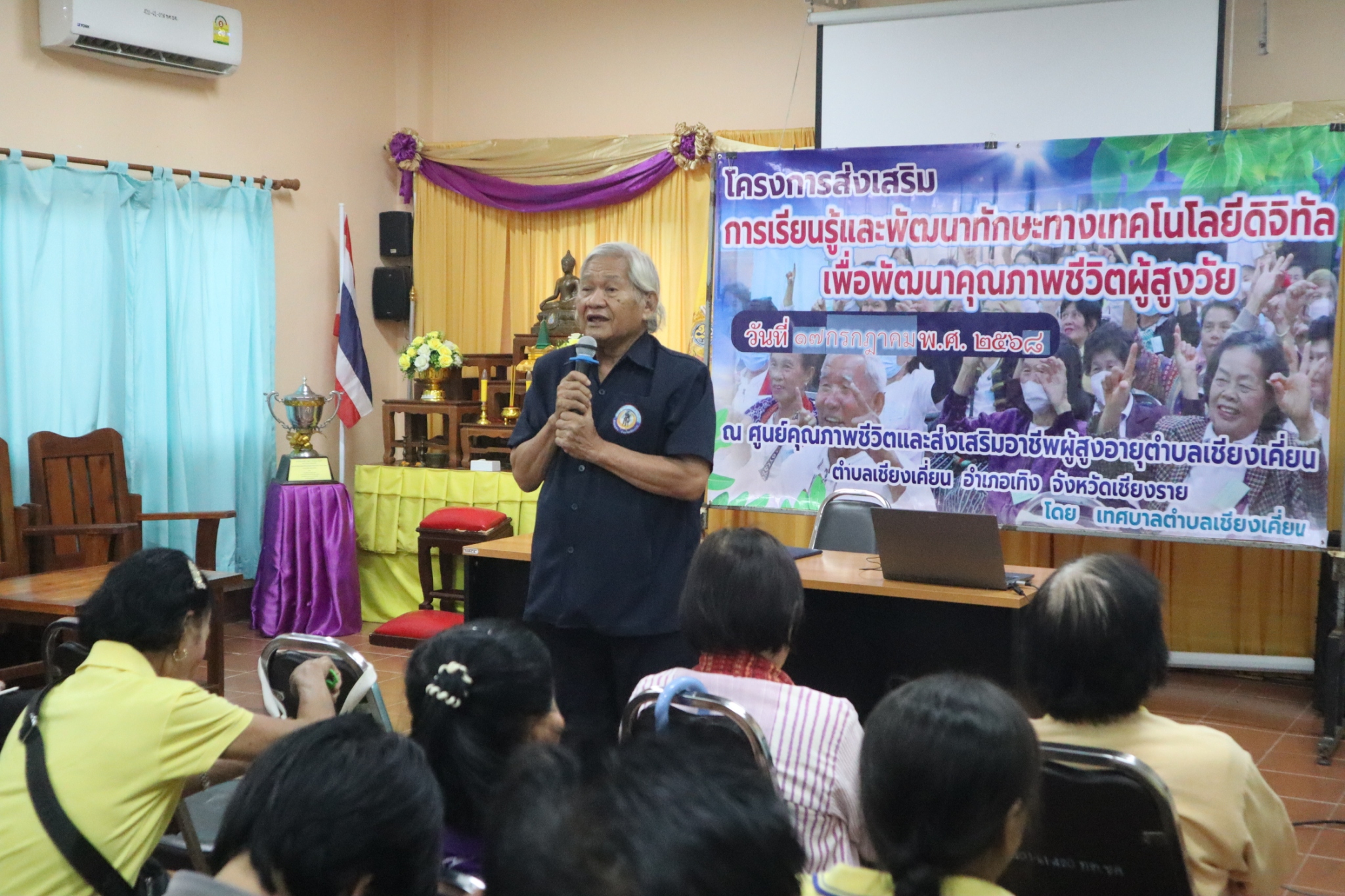 เทศบาลตำบลเชียงเคี่ยน ดำเนินการจัดกิจกรรมโรงเรียนผู้สูงอายุ ประจำเดือน กรกฎาคม 2568 โครงการส่งเสริมการเรียนรู้และพัฒนาทักษะทางเทคโนโลยีดิจิทัล เพื่อพัฒนาคุณภาพชีวิตผู้สูงวัย เทศบาลตำบลเชียงเคี่ยน โดยนายสนั่น เชื้อเมืองพาน นายกเทศมนตรีตำบลเชียงเคี่ยน พร้อมคณะผู้บริหารให้เกียรติเป็นประธานในพิธีเปิดกิจกรรมโดยมีนายกุศล ต๊ะต้นยาง ผู้อำนวยการโรงเรียนผู้สูงอายุ เป็นผู้กล่าวรายงาน พิธีเปิดโครงการ ในวันที่ 17 กรกฎาคม 2568 ณ ศูนย์พัฒนาคุณภาพชีวิตและส่งเสริมอาชีพผู้สูงอายุตำบลเชียงเคี่ยน โดยมีคุณฐิติการณ์ ศิริอิศรานุวัฒน์ นักวิชาการวัฒนธรรมชำนาญการ จากสำนักงานวัฒนธรรมจังหวัดเชียงราย เป็นวิทยากร โดยการจัดกิจกรรมโครงการส่งเสริมการเรียนรู้และพัฒนาทักษะทางเทคโนโลยีดิจิทัล เพื่อพัฒนาคุณภาพชีวิตผู้สูงวัย เพื่อส่งเสริมการเรียนรู้การใช้เทคโนโลยีดิจิทัล ของผู้สูงอายุให้รู้เท่าทันสื่อดิจิทัล เพื่อพัฒนาศักยภาพของผู้สูงอายุในการใช้สื่อเทคโนโลยีเพื่อการเรียนรู้ และเพื่อส่งเสริมให้ผู้สูงอายุสามารถดำรงชีวิตในสังคมที่มีการเปลี่ยนแปลงได้อย่างเหมาะสมและมีความสุข