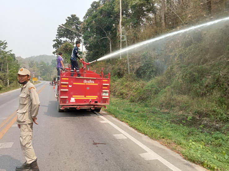 งานป้องกันและบรรเทาสาธารณภัยเทศบาลตำบลเชียงเคี่ยน ออกพื้นที่ดับไฟป่าบริเวณโค้งเชียงเคี่ยน และ บริเวณศาลเจ้าพ่อม่อนแดง เมื่อวันอาทิตย์ ที่ 16 เมษายน 2566